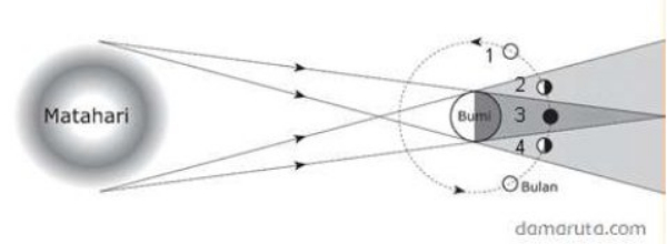 Ini berarti bumi langsung berada di antara matahari dan bulan, sehingga cahaya matahari terhambat.